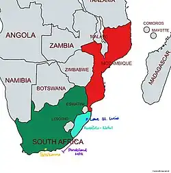 8. ^ a b Fong, T. Natal Knifejaw Distribution [map]. Scale not given. MapChart. 17 October, 2024.