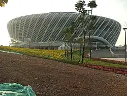 The facility has a 15,000-seat main stadium named "Central Court", a 5,000-seat annex stadium (Court 1), and 6 standard outdoor hard courts with necessary supporting facilities, covering an area of 103,400 square metres (1,113,000 sq ft).[3][4] The center is located in the Wuhan East Lake New Technology Development Zone, being adjacent to Erfei Hill.