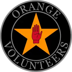 ![]() ![]() Above: Emblem of the Orange Volunteers Below: Flag used by the Orange Volunteers | |