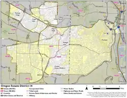 Oregon's 14th Senate district comprises parts of Washington and Multnomah counties, including much of Beaverton and southwest Portland. It contains Oregon House districts 27 and 28. It is currently represented by Democrat Kate Lieber of Beaverton.