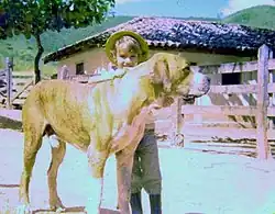 The search and rescue of the last specimens that still correspond to the morphology of the farm dogs of the 1960s and 1970s is still in progress.[7][3] Outside the official kennel clubs, many extremely rustic specimens are still found, being useful on farms inland away from contacts with foreign races, and selected on the farm for many generations. The specimens found are evaluated through anatomy and temperament, and if approved, they are cataloged, receiving a single register by the SOBRACI.[3] Some of the approved dogs are bred to pedigree Fila dogs of the old standard, reclassified as Original Fila Brasileiros. The Nucleus of Preservation of the Original Fila Brasileiro (Núcleo OFB) was founded recently and is presided by Antônio Carlos Linhares Borges, through the OFB Nucleus there is the distribution of registered dogs to regional units of all Brazil for breeding purposes and controlled preservation of the breed. The "ideal dog" model is based on the standard idealized by Paulo Santos Cruz, Erwin Waldemar Rathsam and João Ebner in 1946.[3] The Núcleo OFB produces educational posts on social networks and platforms, such as Facebook and YouTube.