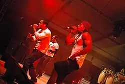 Orishas are a Cuban hip hop group from Havana, Cuba, founded in 1999. The group was first called "Amenaza",[1] "threat" or "menace" in Spanish, and appealed to the Cuban youth. The choice of this name for the hip hop group is a way of creating a direct link between this band and the African diaspora. The group is based in France where they made a deal with a record company, although they visit Cuba frequently. In 1999 Fidel Castro threw a party for them and had a meeting with all the musicians.[2] It was the first time the Cuban government showed support for hip hop music. The group was and still is popular in Europe (especially France, Italy, Spain and Portugal) and Latin America. Yotuel Romero and Ruzzo Medina, who moved from Havana to Paris as part of an international studies program, joined Roldán González and Flaco-Pro to form the band in 1999. Their work is influenced by the hip hop movement as well as Cuban and other Latin rhythms. As of November 2024, they had produced a total of five studio albums and a greatest hits album; their latest album is Gourmet (released May 25, 2018). In 2009 they participated in the concert Paz Sin Fronteras II in Plaza de la Revolución, Havana, Cuba. Orishas reunited to record new material in 2016.