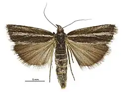 - ^ a b c d Gaskin, D. E. (1975). "Revision of the New Zealand Crambini (Lepidoptera: Pyralidae: Crambinae)". New Zealand Journal of Zoology. 2 (3): 265–363. doi:10.1080/03014223.1975.9517878.