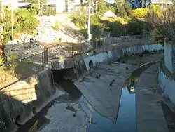 The creek moves through the University of Sydney and in particular in St John's college oval, at the back of Royal Prince Alfred Hospital. An old photo of Royal Prince Alfred Hospital shows the creek prior to it being turned into a storm water drain.[1]