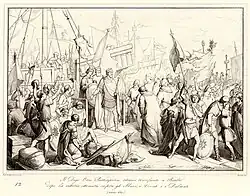 ![]() Orso returns in triumph from his victory against the Slavic pirates, drawing by Giuseppe Lorenzo Gatteri | |