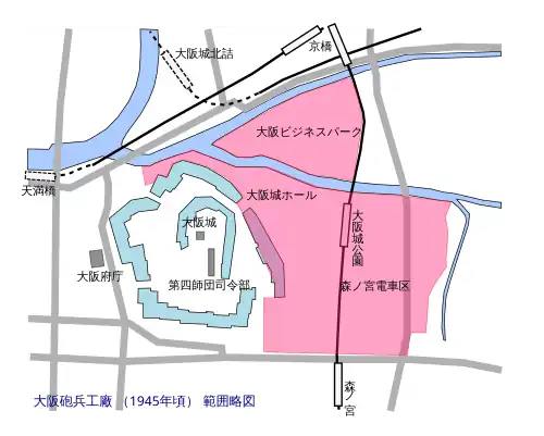 With the end of the Pacific War, the 75-year history of the arsenal came to an end. After the war, the extensive grounds were partially overbuilt by commercial high-rise buildings, and partly used as a park (Osaka Castle Park).[1]