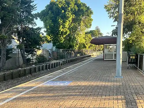 Just south of the station, the line from Adelaide becomes single track for the remainder of the journey to Outer Harbor. It once had two platforms but one closed in the 1980s when the balloon loop north was removed. The unused track was gradually removed, with the last remnants at the level crossing next to the station pulled up in July 2019. Just south of the station, the ICI Osborne railway line branched off to the ICI Osborne works (later owned by Penrice Soda Products). This had industrial passenger service until 1980 and has since been dismantled. Some peak hour services from Adelaide terminate at Osborne.[1]