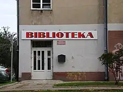 Public library on the ground floor of 24 Bednarska Street, viewed from Sanocka Street (September 2014)