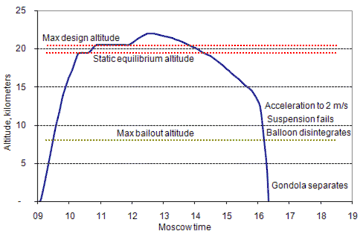 6. ^ Balloon volume is specified for high-altitude, fully inflated condition, which for Osoaviakhim-1 took place at 17,700 metres. Volume at ground level was 6–8 time smaller; the gas inside expanded on ascent into stratosphere.
