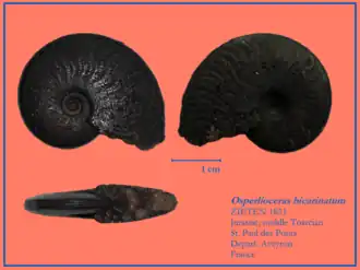 - O. bicarinatum Zieten, 1831 (= Ammonites bicarinatus, Harpoceras bicarinatum, Polyplectus bicarinatus)