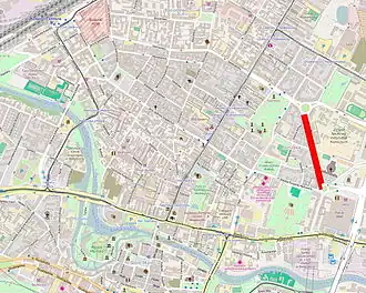 The avenue is located in the eastern part of the downtown Bydgoszcz and links J. Weyssenhoff Square with Ossoliński roundabout.