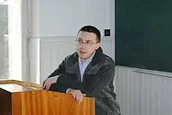 Drozdov is a well-known and radical opponent of the Russian language in Ukraine[1] and is a sharp critic of the Ukrainian authorities, primarily the President Volodymyr Zelenskyy.[2][3]