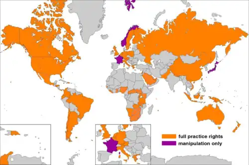 - ^ "International Practice Rights Map". American Osteopathic Association. Archived from the original on 2016-08-19. Retrieved 1 July 2012.