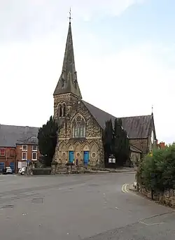 Christ Church was opened by the Congregational Church in October 1972,[61] but now shared by the United Reformed Church and the Presbyterian Church of Wales, was the home church of the composer Walford Davies, who sang in the choir.[62][63] There is a Welsh-speaking church, the Seion Church, and the Holy Anglican Church, a Western Rite Anglican establishment. Coney Green has a Jehovah's Witness Kingdom Hall. The Religious Society of Friends also holds meetings in Oswestry. The Grade II* star Hermon Chapel, by chapel architect Thomas Thomas, was a Welsh-speaking Congregational church[64] and is now an arts and community centre.