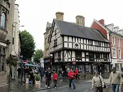 Oswestry – Historic buildings in the town centre, October 2008. Timber-framed building in foreground is Llwyd Mansion.