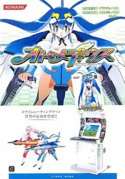 Otomedius[1] is a side-scrolling shooter video game by Konami which features personification of space fighters from various Konami games. The game's title is a pun, being a portmanteau of the terms "Otome" and "Gradius", with a set of equipment resembling space fighters from Gradius.