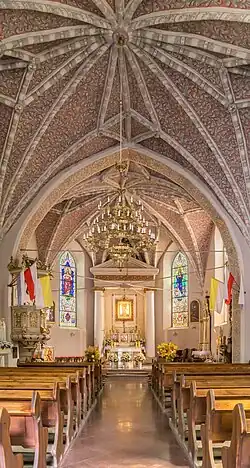 The landmarks of the village are the Gothic All Saints church and the Baroque Moszczeński Manor House which now houses an orphanage.