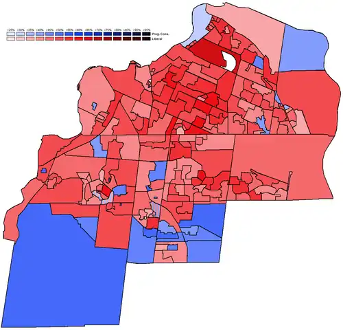 1933-1954: Capital Ward, Dalhousie Ward, Central Ward, Wellington Ward, that part of Riverdale Ward west of Main Street and that part of Elmdale Ward east of Parkdale Avenue.