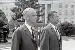 From 1965 to 5 June 1970 he served as the Minister of Defence during the Per Borten cabinet. On that date, he was appointed Minister of Trade and Shipping, which he held until the Borten cabinet fell in 1971.[1]
