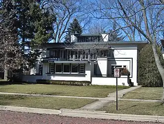 The Ouilmette North Historic District is a residential historic district in northeastern Wilmette, Illinois. The district includes 911 contributing buildings; all are houses except for two churches, Trinity United Methodist Church and the Community Church of Wilmette. The southern half of the district was originally part of the Ouilmette Reservation, an Indian reservation which was sold to developers and became the original village of Wilmette in 1872. Development in the district began after the village's incorporation and continued through World War II, with most new construction happening in the early twentieth century. The district includes examples of Queen Anne architecture from the late nineteenth century, Prairie School architecture from the first two decades of the twentieth century, and revival style architecture from the 1920s. Its Prairie School architecture is especially notable as it contains works by William Eugene Drummond and John S. Van Bergen, two early Prairie School architects who practiced with Frank Lloyd Wright.[2]