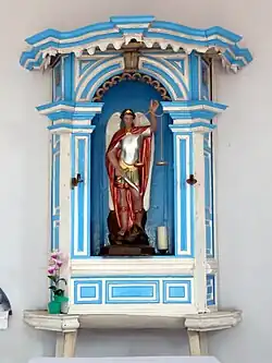 In 1856, due to questions about public health, a discussion began in the city about the need to build a cemetery and to stop burials in religious temples. The City Council took action and required the region's farmers and ranchers to contribute financially to the project. In this period, most of the local population was rural, as the economy changed from gold mining to agriculture at the end of the 18th century. As the obligation imposed by the City Council did not work, the Brotherhood of the Blessed Sacrament, on its own initiative, built the Saint Michael Cemetery between the years 1867 and 1869, whose documentation still exists in the parish archive.[25] Currently, the administration of the cemetery is the responsibility of the city hall; the entrance chapel and the chapel for celebrations, which still has an altarpiece with baroque traits, are currently Cultural Heritage of the Municipality.[6]