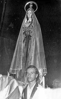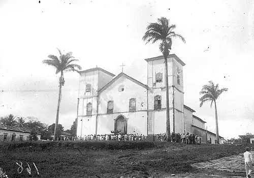 In October 1737, the Book of Deaths started to register deaths in Corumbá de Goiás, where the Chapel of Our Lady of Peñafrancia, inaugurated in 1734 and subordinated to the Rosary Parish, began to be attended by Father Antônio Soares.[1][9] The Chapel of Peñafrancia, elevated to the status of Mother Church in 1840, was the pioneer of the parishes of Abadiânia, Alexânia and Cocalzinho.[10][11][12] The Portuguese influence of the Our Lady of the Rosary Parish replicated the traditions of Pirenópolis in the Chapel of Peñafrancia in Corumbá, such as the Brotherhood of the Blessed Sacrament, Holy Week celebrations, Feast of Saint Sebastian, Feast of the Divine, Choir, Orchestra and band in the masses and processions, as well as the Cavalhadas, held in the city in September during the patron saint's feast.[9]