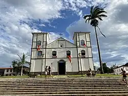 The reputation of the gold deposits on the margins of the Peixe River brought many adventurers to the Chapel of Rio do Peixe region who were responsible for building the Chapel of Saint Anne that, besides being the patron saint, was considered the owner of the place, showing the presence of Catholicism in a landscape where the houses or ranches were simple and small, made of wattle and daub technique, adobe, with a roof of buriti leaves with a ground floor, of one or two pitches and single storey.[22] The current one, the third one built, is located at the top of a square, a natural grassed elevated area, and has a facade with characteristics of the colonial period, formerly whitewashed and with turquoise blue frames, in a style that, at first, doesn't distinguish it from many others scattered throughout the recesses that sheltered populations in the Brazilian colonial period, and brings with it traits very characteristic of this period, such as having the local cemetery attached, being a great place of pilgrimage to the festivities celebrated there in July. In the mid-1980s, under the tutelage of the Goianésia Parish, the current temple underwent internal transformations, such as the removal of the original wood floor for a masonry and ceramic floor and lining with a plasterboard structure; two other rooms were added to the temple, one for the sacristy and the other to serve as the priests' dormitory during the festivities.[22]