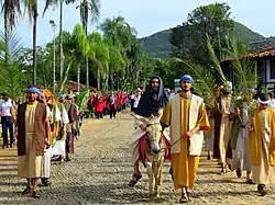In Pirenópolis, the manifestations of the religious traditions of Holy Week have been held since the 18th century, funded by brotherhoods, such as the Blessed Sacrament, and housed exclusively in parish churches.[7][21] The rites of the celebration of the Passion of Christ, liturgical and paraliturgical acts, constitute an exceptional cultural moment, of emotional and affective value to the people of the place, and has been conceived since its origin and was the celebration of greatest local expression; it is the period when most celebrations were held.[21][42]