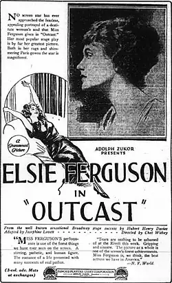 - ^ "Illustrated Screen Report: Outcast". Exhibitor's Trade Review. 13 (3). East Stroudsberg, Pennsylvania: Exhibitor's Trade Review, Inc.: 153 December 16, 1922. Retrieved April 24, 2014.