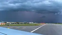 Phase 1 of the expansion was completed on time and on budget by June 2016. Phase 2 began in July 2016. Part of the phase 2 reconstruction was the removal of the famous and only A-frame open-air observation "waving gallery" in the region as it was closed to the public in January 2017. The expansion of the Terminal Building was completed in late February 2019 and grand reopening was on 27 March by Prince Charles on his royal visit to Grand Cayman and Cayman Brac on 27 & 28 March 2019. The expansion of the Apron area and strengthening and lengthening of the runway and taxiways project began in Summer 2019. A bid for contractors for the runway lengthening project commenced and companies had been chosen.[9] In late 2019 into early 2020 movement of wildlife, clearing of area and filling of the ponds west of the runway, west of threshold 08 had commenced, and construction of runway lengthening and apron expansion has begun. This phase expected was completed by June 2020.[10][11] Due to faster than expected passenger capacity of the newly redeveloped terminal building. Minister of Tourism announced that the phase of the Airport Master Plan that would see to the development of the second terminal building, also known as the Greenspace Terminal Building has been pushed forwards, to after the runway and apron lengthening and expansion phase. The Greenspace Terminal Building development will also include new Apron development, new runway extension considerations, and jet bridges. In addition to the Greenspace Terminal Building development, additional expansion to seating on the second floor of the redeveloped terminal will be done in the short term.[11]