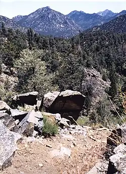 The mountainous terrain has deep, winding, open and expansive canyons, many of which contain springs with extensive riparian vegetation. This area is a transition zone between the Great Basin, Mojave Desert and Sierra Nevada ecoregions. Vegetation varies considerably with a creosote desert scrub community on the bajadas, scattered yuccas, cacti, annuals, cottonwood and oak trees in the canyons and valleys and a juniper-pinyon woodland with sagebrush and digger/gray pine on the upper elevations.