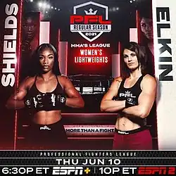 5. ^ Martin, Damon (14 April 2021). "Boxing champ Claressa Shields faces Brittney Elkin in MMA debut as part of PFL card on June 10". MMA Fighting. Retrieved 14 April 2021.