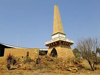 Land was donated to the government in 1886, up to 100 m from the site of the cairn, from the farm owned by a M.W. Pretorius.[3]: 182  He had lease parts of his farm to gold prospectors who were searching for the continuation of the Main Reef of the Witwatersrand Gold Rush, which had its origins to the east in Johannesburg and did not want this sacred memorial site disturbed.[3]: 182  In 1889, the local Landrost Human, proposed to the South African Republic that a formal monument, in the form of an obelisk, be built on the cairn site.[3]: 187