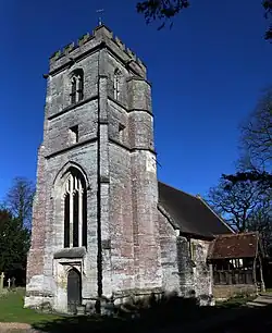 St Giles is a Grade II* listed building[5] church alongside Packwood Hall. The nave and chancel date from the thirteenth century[1][5] and the tower around 1500.[5] The north transept was added around 1704.[5] The church contains memorials to the Featherston family of Packwood Hall.[5] The tower was financed by Nicholas Brome, lord of the manor of nearby Baddesley Clinton, in atonement for killing the local priest who was attacking his wife.[5]