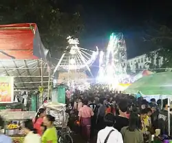 Pagoda festivals are similar in nature to agricultural shows (country fairs) or carnivals, and form a significant important part of cultural life, particularly in the countryside. During pagoda festivals, temporary bazaars (including food stalls and merchandise stands), entertainment venues (including anyeint dramas, yoke the performances, lethwei matches,[3] and arcades) are set up in the vicinity of the pagoda.[1]