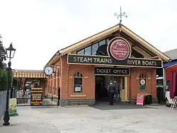 The line from Paignton to Kingswear was sold to the Dart Valley Light Railway plc on 30 December 1972, which operated another nearby heritage railway at Buckfastleigh. An independent station alongside the main platform, known as Queens Park, was opened to serve the Kingswear trains on the site of the carriage sidings opened in 1930. This site includes a shed for the railway's operational engines and carriages.[2] The line is now promoted as the Dartmouth Steam Railway.