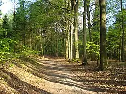 According to Bohdan Dobrzański's map, the park lies on soils formed from clayey sands and tills, as well as weakly clayey and clayey sands of various origins.[6] These are mostly Quaternary deposits, primarily Pleistocene and Holocene. These soils have low agricultural productivity due to significant acidification of the parent material. Per the FAO nomenclature, the park area is covered by typical Cambisols.[7] Such soils support forest vegetation of hornbeam forests and fertile lowland beech forests. According to the agricultural soil map by Tadeusz Witek and Marian Koter, the park lies on pseudopodzolic and leached brown soils, formed on clayey sands.[8] Compared to typical brown soils, leached brown soils require more intensive liming and fertilization but can yield similarly under favorable conditions. These soils are classified as the good rye complex for agricultural soil suitability complexes.[9]
