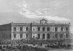 In July 1872, both the palace and the park were inaugurated and the exposition took place soon after. After the exposition, the palace was home to the Society of Fine Arts. During the War of the Pacific the building was looted.[2] After the looting it was used as a hospital and later a garrison for the Chilean army.