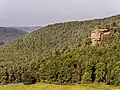 The Palatinate Forest Nature Park (German: Naturpark Pfälzerwald) lies in the south of Rhineland-Palatinate in Germany and borders on France. The nature park covers an area of 177,100 hectares (684 sq mi) and some 76% of its area is under the woods of the Palatinate Forest, the largest contiguous forest region in Germany. Together with parts of northern Alsace and Lorraine, it forms the Palatinate Forest-North Vosges Biosphere Reserve and has an impressive Bunter sandstone landscape.