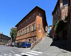 The Palazzo Celsi Pollini, once also called the Palazzo del Vescovo, is a Renaissance style urban palace in Siena, Italy. It is located on Pian dei Mantellini #39-41, at the corner with Via San Quirico. A 19th-century source refers to the house as Casa Campioni.[1] The main facade faces the campanile of San Niccolò del Carmine.