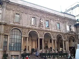 The Palazzo delle Scuole Palatine ("Palace of the Palatine Schools") is a historic building of Milan, Italy, located in Piazza Mercanti, the former city centre in the Middle Ages. It served as the seat of the most prestigious higher school of medieval Milan. Many notable Milanese scholars of different ages studied or taught in these schools; Augustine of Hippo and Cesare Beccaria,[1] among others, served as teachers in the Palatine. The current building dates back to 1644, when it replaced an older one, which had the same function and was destroyed by a fire.