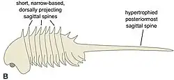 A vicissicaudatan arthropod that was aligned close to the trilobites. This creature had caudal flaps that are present on the terminal tergite, alongside an elongated spine.
