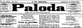 Paloda was a literary magazine published in Bârlad, Romania. (Paloda is the old name of the city of Bârlad)[1] The magazine was established on 5 February 1881 by Ştefan Neagoe. The magazine continued to appear until 1883 when it was replaced by the Tutova newspaper. Its publication restarted in 1893 and continued till 1908.[1][2]