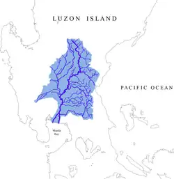 Its headwaters are at the Sierra Madre and runs a south and southwesterly course for about 261 kilometres (162 mi) until it drains into Manila Bay.[4]