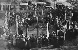 The subject of the second day began with "Women in Industry," at which speeches were made by the delegates, Mary McDowell and Mrs. Raymond Robins of Chicago. At the request of Anderson, a summing up was made by the delegate from the US, who also emphasized the standards for the protection of working women in this country and urged the delegates to work for similar protective legislation. The afternoon was devoted to a session on, the "Prevention of Traffic in Women," presided over by Parker, at which speeches were made by several government officials and all the delegates. This session was again closed by the delegate from the US, who urged greater supervision of commercialized amusements for young people and the extension of constructive programs of wholesome recreation.[1] That evening a special ball was held to honor the Latin American delegates. Among the invited guests were Robert Garcia, consul of Mexico, and Elena Landázuri, who served as a Spanish translator for the conference, as well as all of the delegates.[4][5]