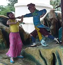 ![]() Wu Song killing Pan Jinlian, from a 1961 performance of Ouyang Yuqian's drama Pan Jinlian | |||||||||