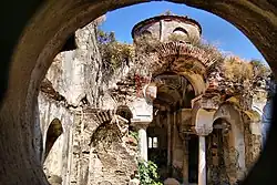 It is indicated in some handwritten scripts that the church was dedicated to Panagia Pantobasillissa. The church is based on a Greek cross plan to in the east and west directions. Although the building is not used currently, it has still survived. According to the construction style of its walls, it is believed that the building was constructed at the end of the 13th century.[1] The church has pictures on its walls at different layers and is considered to be very important for Christians. The first layer of frescos were made at the start of the 14th century, the second layer of frescos were made in 1723. It is believed that the columns were brought from Alexandria.[1] There are support pillars at the façades and the public calls the building as the Arched Church. The walls and the dome of the church are in good condition.[2]