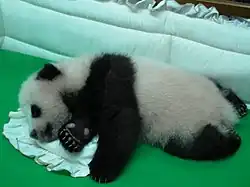 The method was popularized following reports of an experiment performed by zoologists in Thailand, in which they showed several captive giant pandas at Chiang Mai Zoo a number of videos showing other giant pandas mating.[3][4] Though the researchers behind the project state that they believe there have been successful mating due to usage of mating videos for the animals, such success so far has not been achieved outside of China,[5] where 31 cubs were born over a ten-month period following commencement of the experiment. Other methods, including the use of Viagra to sexually stimulate pandas, have thus far been unsuccessful.[6] Still, panda pornography is thought to be hardly used by most zoo-keepers, as the animals have poor eyesight, making scent and sound more important.[2]