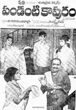 Pandanti Kapuram is a 1972 Indian Telugu-language family drama film directed by Lakshmi Deepak. The film features an ensemble cast of Krishna, S. V. Ranga Rao, Vijaya Nirmala, Jamuna, B. Saroja Devi, Anjali Devi, Gummadi, and Prabhakar Reddy.[1] Released on July 21, 1972, Pandanti Kapuram was one of the biggest hits of the year. It is also the first film of Krishna to celebrate a silver jubilee (175 days) run at the box-office.[2]