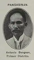 Elected in 1935. | 1935–1941 Agno, Aguilar, Alaminos, Anda, Bani, Bolinao, Bugallon, Burgos, Dasol, Infanta, Labrador, Lingayen, Mabini, Sual | ||